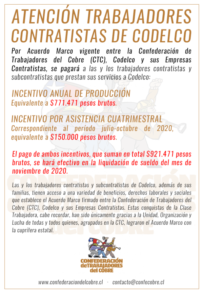 Sitio oficial de la Confederación de Trabajadores del Cobre (CTC – Chile), una organización político sindical de la minería que agrupa y organiza a las y los trabajadores contratistas y subcontratistas del cobre.