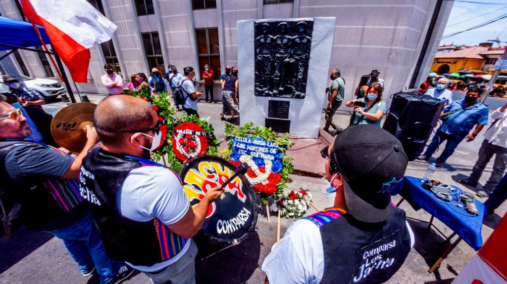 - Durante el acto, cade señalar, participaron vecinas y vecinos del sector de la Escuela Santa María, como también dirigentes y exponentes culturales de la zona que permanentemente se esfuerzan y encargan de mantener la memoria viva. Estuvieron, entre otras y otros, el Consejero Regional y Dirigente del Colegio de Profesores de Iquique, Pedro Cisternas; el Antropólogo y Encargado de la Casa Municipal de la Cultura , Diego Zarricueta; la Dirigenta vecinal Silvia Prieto, quien además trabaja activamente en la creación de lo que será el Museo de la Escuela Santa María; también estuvieron Héctor Callasaya junto a Arline Oro, quienes rindieron honores a las y los asesinados en la masacre con el tradicional “Cachimbo de Tarapacá”; y finalmente la Comparsa Los Jach’a.