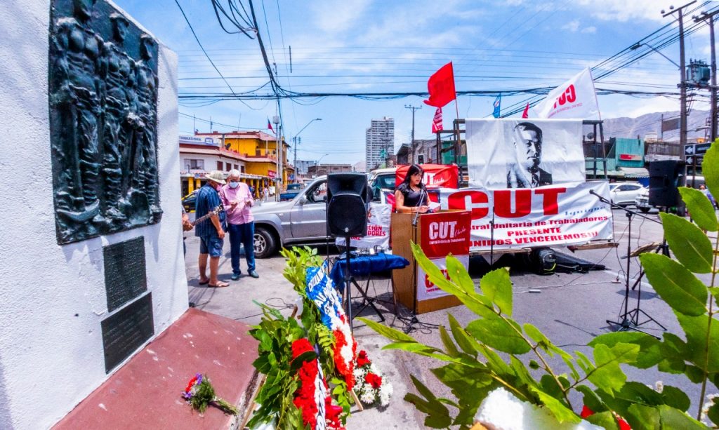 En la ocasión, y como única oradora, se dirigió a las y los presentes la Presidenta de la Central Unitaria de Trabajadores (CUT) de Iquique, Esmeralda Contreras, quien, luego de hacer un relato de los acontecimientos ocurridos aquel fatídico 21 de diciembre de 1907, se refirió a las demandas de las y los trabajadores en la actualidad que, dicho sea de paso, tienen una característica y fondo en común con la referida en esta conmemoración: la intromisión y voracidad del capital, y la necesidad de justicia y dignidad de quienes -en la práctica- generan las riquezas (las y los trabajadores), destacando que “Somos parte de la clase trabajadora, no deseamos que sea el capital el que siga determinando los destinos del mundo, aspiramos a la construcción de una sociedad digna y justa en dónde todos los ciudadanos tengamos los mismos deberes y derechos”.