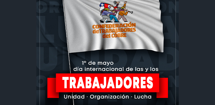 Este 1º de mayo, día en que se conmemora un nuevo Día Internacional de las y los Trabajadores, fecha en que el movimiento obrero mundial conmemora a los mártires de Chicago (EE.UU) que hace 136 años fueron condenados a muerte por luchar, entre otras reivindicaciones, por una jornada laboral de ocho horas; la Confederación de Trabajadores del Cobre (CTC) envía a todas y todos los trabajadores del país —especialmente a aquellas y aquellos que se desempeñan en la minería del cobre— su más afectuoso saludo.