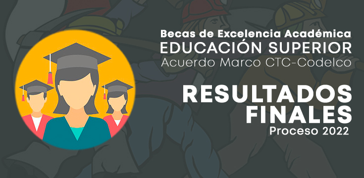 Compañeras y Compañeros, comunicamos que a partir de hoy lunes 11 de julio ya están disponibles los resultados finales de sus postulaciones a las Becas de Excelencia Académica de Educación Superior (proceso 2022) que corresponden al vigente Acuerdo Marco entre la Confederación de Trabajadores del Cobre (CTC), Agema y Codelco.