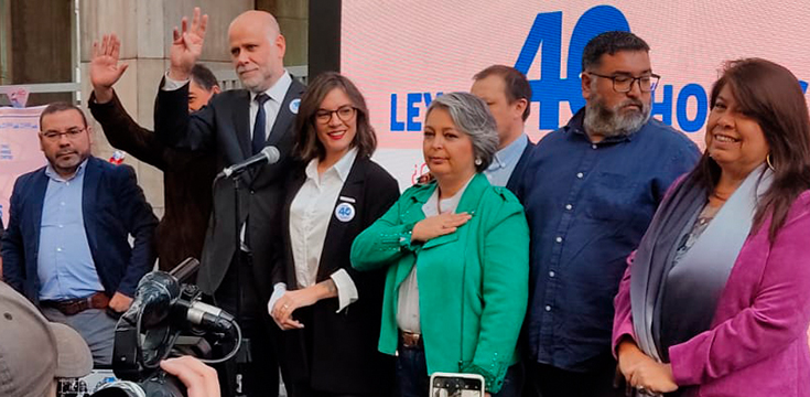 En horas de la mañana, trabajadoras y trabajadores, autoridades de gobierno y representantes sindicales se dieron cita en el frontis del Ministerio del Trabajo y Previsión Social a fin de anunciar y promover la entrada en vigor de la Ley 40 horas. En dicho evento, al que también asistió Ana Lamas Aguirre, Presidenta de la Confederación de Trabajadores del Cobre (CTC), se dio especial importancia al permanente rol y esfuerzo de diversas organizaciones sindicales (entre ellas la CTC, y que partió el año 2017 en conjunto con la entonces Diputada y actual Ministra Secretaria General de Gobierno, Camila Vallejo, quien es autora del proyecto original) en torno a la iniciativa de disminuir la carga horaria laboral. Del mismo modo, este importante avance fue señalado como un ejemplar resultado del diálogo social y tripartito, en el que representantes de las y los trabajadores, junto con representantes de gobierno y empresarios, alcanzaron una transversal comprensión sobre esta iniciativa, que, cabe subrayar, constituye un avance para el país en general pues lo que busca es conciliar la vida laboral y familiar.