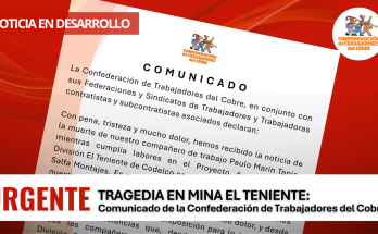 La Confederación de Trabajadores del Cobre, ante todo, enviamos nuestras más sentidas condolencias a la familia, amigos y compañeros de labores de ambos trabajadores fallecidos. De igual manera, manifestamos también nuestra solidaridad con quienes resultaron gravemente heridos en este fatal y lamentable accidente.