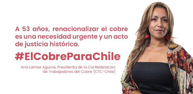 En este aniversario, número 53 de la gran gesta por nuestra soberanía, hacemos un llamado a todos los sectores de la sociedad chilena a unirse en un esfuerzo conjunto para preservar y potenciar el legado de la nacionalización del cobre. Es responsabilidad de todos los líderes, sean políticos, empresarios, trabajadores y ciudadanos, asegurar que la riqueza de nuestro país beneficie a todos y no solo a unos pocos, donde el fortalecimiento de políticas públicas en torno a mejorar la salud, vivienda, educación y pensiones sea realmente una prioridad. Además, y para también robustecer la democracia y distribución de la riqueza en nuestro país, se debe avanzar decididamente hacia la Negociación Ramal y el establecimiento de un Salario Vital que esté por sobre la línea de la pobreza.