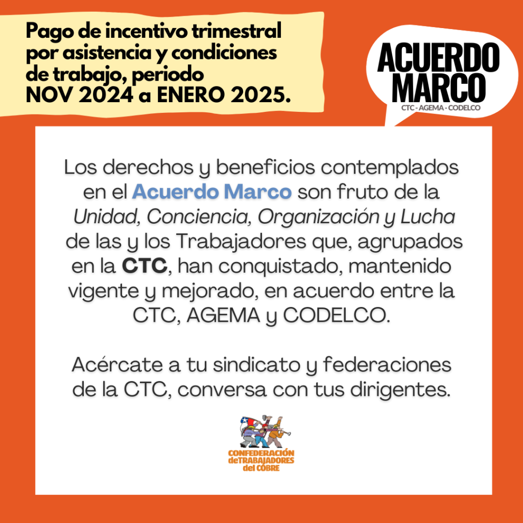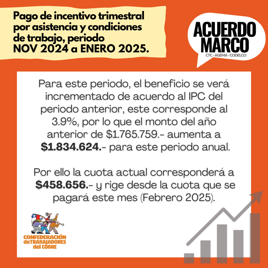 Tenemos nueva información respecto del pago del incentivo trimestral por asistencia y condiciones de trabajo del periodo 2024 a enero 2025, ya que según el cálculo de IPC, este se reajustará un 3,9%.