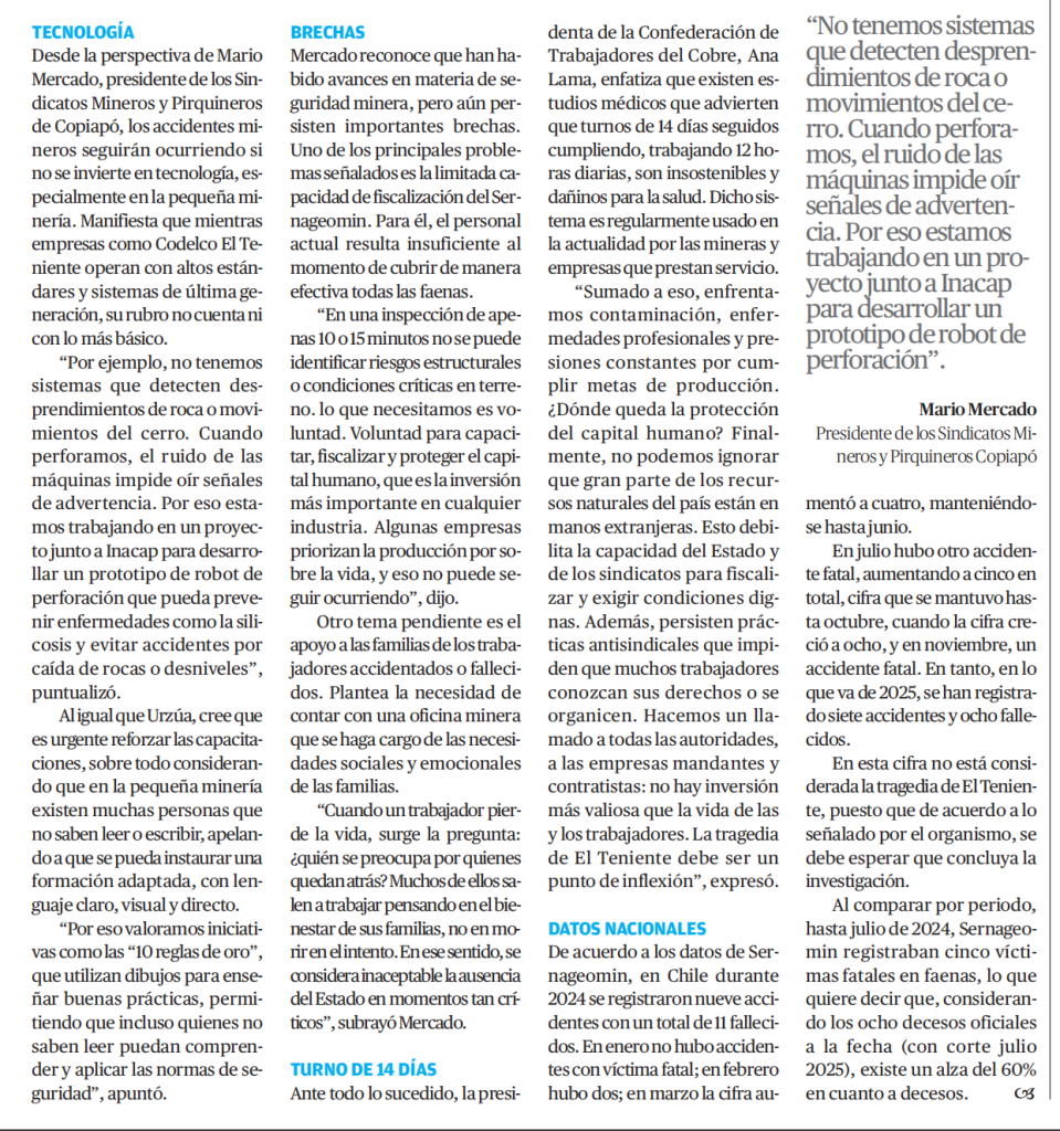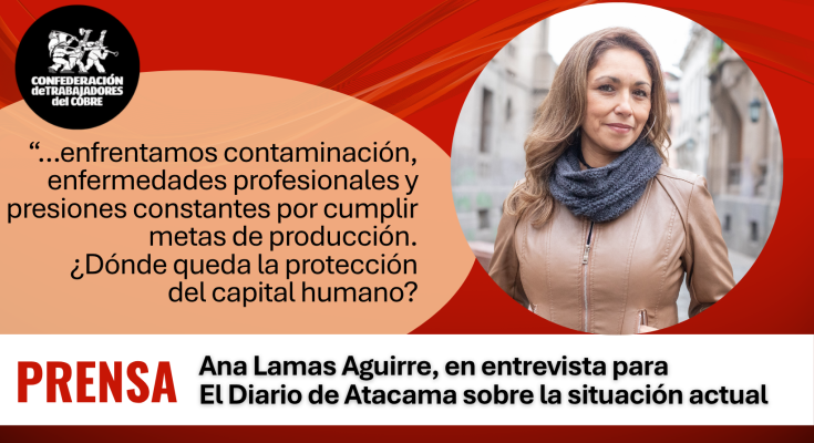 En una entrevista realizada para la edición de El Diario de Atacama publicada el 05 de agosto, la presidenta de la CTC realizó un análisis de la situación actual frente al trágico accidente en El Teniente que dejó seis trabajadores fallecidos.
