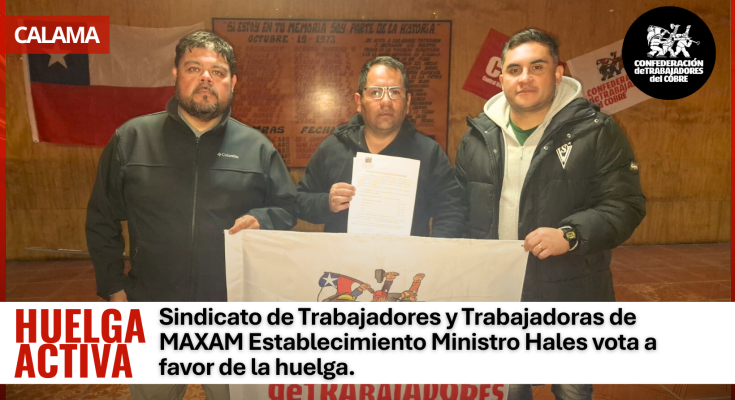 CALAMA | El Sindicato de Trabajadores y Trabajadoras de MAXAM Establecimiento Ministro Hales, afiliado a FESITRAM, brazo orgánico de la CTC, ha votado a favor de la huelga en una votación realizada el día de ayer, con una amplia mayoría de votos a favor de esta medida.