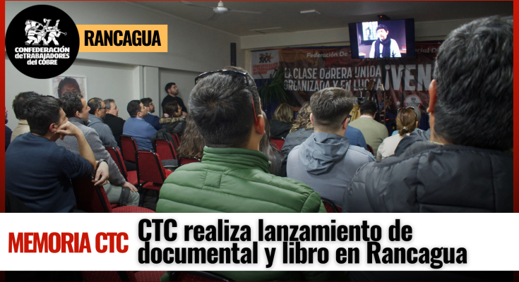 RANCAGUA | El lunes 1 de septiembre, la CTC realizó el lanzamiento del documental y libro “CONFEDERACIÓN DE TRABAJADORES DEL COBRE: UNA HISTORIA DE UNIDAD Y LUCHA SINDICAL” en su sede de Rancagua en conjunto con FETRATEC, brazo orgánico de la Confederación en el territorio.
