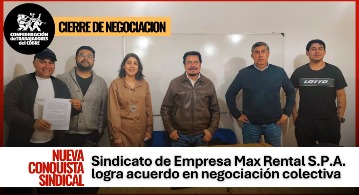 RANCAGUA | El Sindicato de la empresa Max Rental S.P.A. logró cerrar una negociación colectiva exitosa después de aprobar la huelga, obteniendo importantes conquistas remunerativas para sus miembros. La aprobación de la oferta del contrato colectivo contó con más del 90% de los socios del sindicato.