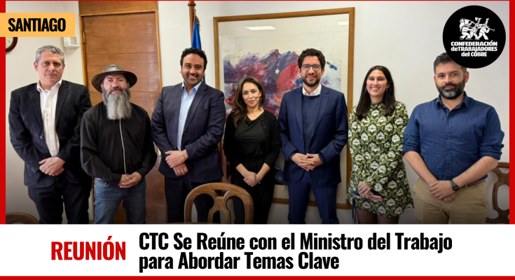 Santiago, 28 de octubre de 2025 – La presidenta de la Confederación de Trabajadores del Cobre (CTC), Ana Lamas Aguirre, y el dirigente Patricio Roco, sostuvieron una importante reunión con el Ministro del Trabajo y Previsión Social de Chile, Giorgio Boccardo, para exponer las problemáticas que afectan a los trabajadores del sector y buscar compromisos concretos.