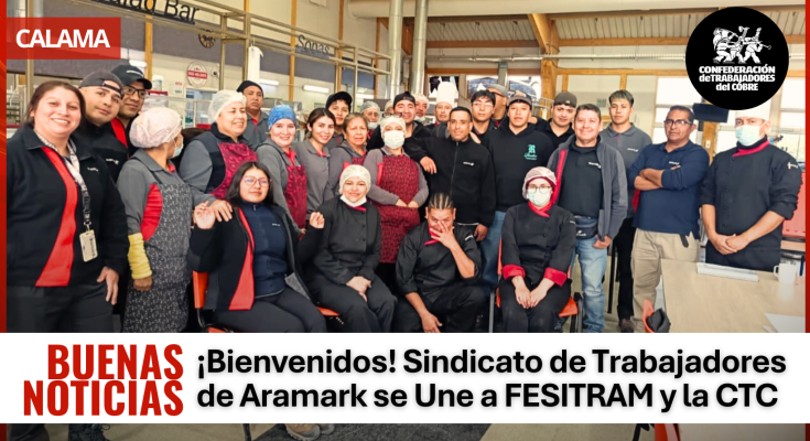 “Compañeros y compañeras, damos la bienvenida al Sindicato de Trabajadores y Trabajadoras de empresa Aramark, establecimiento Minera Gaby. Este ingreso fortalece nuestra voz y acción tanto a nivel federado como confederado en el sector del cobre,” señalaron representantes de la CTC/FESITRAM.