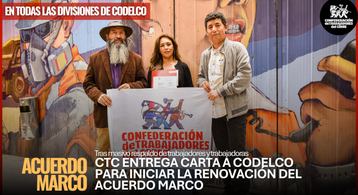 Santiago, 15 de diciembre de 2025 – La Confederación de Trabajadores del Cobre (CTC) oficializó, el pasado 11 de diciembre, el inicio del proceso de negociación para un nuevo Acuerdo Marco con la Corporación Nacional del Cobre (CODELCO). La dirigencia nacional entregó formalmente la carta de notificación en la Oficina de Partes de la estatal.