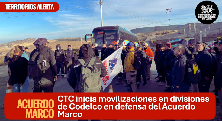 SANTIAGO – Tras las resoluciones adoptadas en las asambleas ampliadas del pasado martes 27 de enero, la Confederación de Trabajadores del Cobre (CTC) ha dado inicio a una serie de movilizaciones en las principales divisiones de Codelco. La medida responde a la no respuesta de la estatal de concretar una mesa de diálogo que permita revisar, mejorar, actualizar y renovar el Acuerdo Marco, instrumento fundamental para la protección de las y los trabajadores contratistas.
