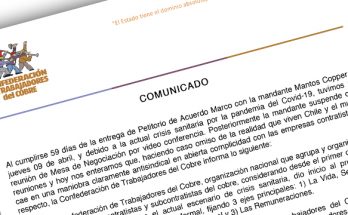 El miércoles 20 de abril, la Federación de Sindicatos de Trabajadores de la Minería y Organizaciones afines de la 2ª región (FESITRAM), que es brazo orgánico de la Confederación de …